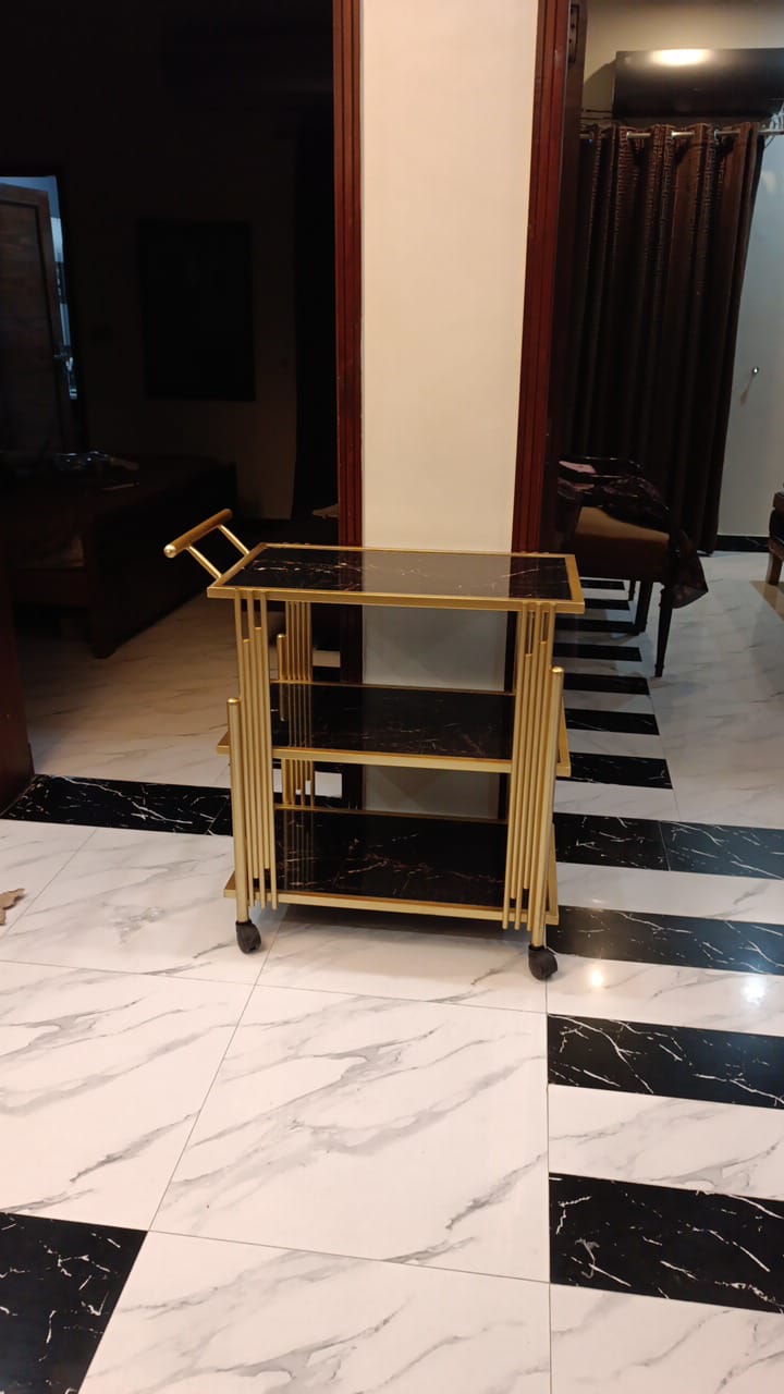 Wooden uv gloss sheet waterproof slides with metal stainless steel rods tea trolley